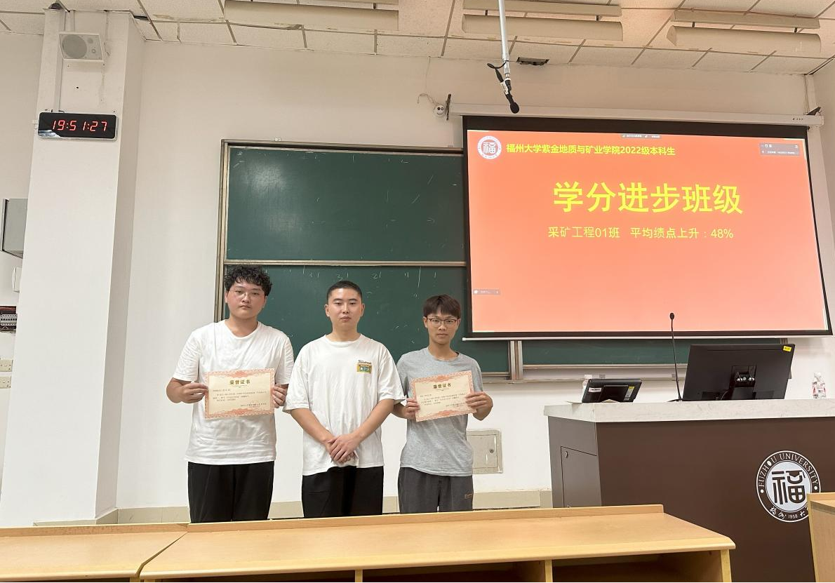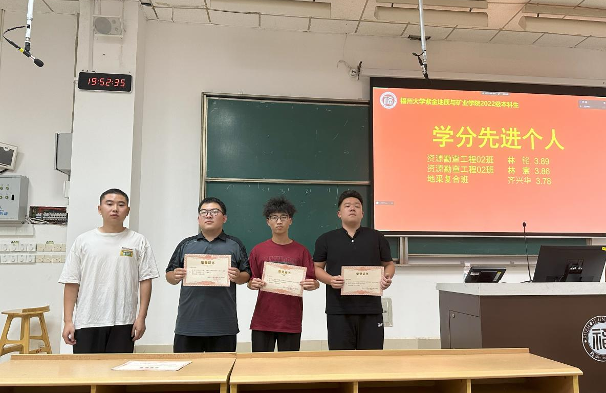 学分先进班级:资源勘查工程02班 上学期班级平均绩点2.93