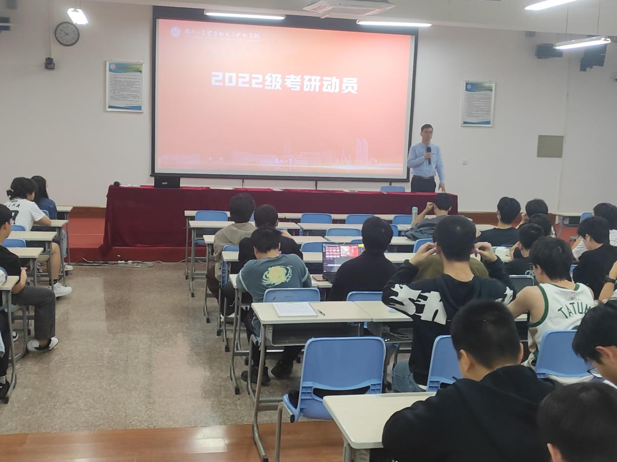 会上,胡建华副院长聚焦就业形式和职业发展,分析了当前矿业行业就业市场的机遇与挑战,鼓励同学们要增强信心,好好把握在中国第一大金矿——紫金山金铜矿实习的机会,提升自己的专业技能。张志雄副书记结合近年来学院考研升学数据作考研动员,深入剖析专业发展趋势,强调“早规划、早行动”的重要性,鼓励学生立足自身优势,科学选择目标院校,他特别指出:“考研不仅是一场知识储备的较量,更是意志力的比拼。要以‘咬定青山不放松’的韧劲,在备考路上稳扎稳打、厚积薄发”
