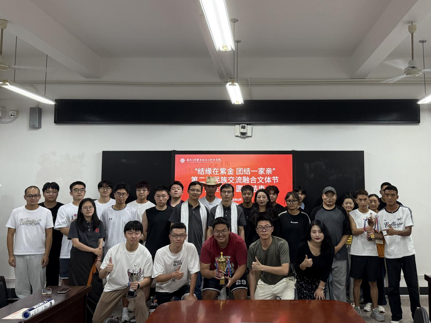 此次 “结缘在紫金,团结一家亲”2025年第二届民族交流融合文体节篮球赛的成功举办,不仅为同学们提供了一个展示自我、锻炼身体的平台,更促进了各民族学生之间的交流与融合。赛场上,大家携手并肩,共同为荣誉而战,增进了彼此间的友谊和信任。通过比赛,同学们深刻体会到了团结协作的重要性,也展现出了当代大学生积极向上、勇于拼搏的精神风貌。相信在未来的学习和生活中,这种团结拼搏的精神将继续激励着同学们不断前进,为构建和谐校园、促进民族团结贡献力量。