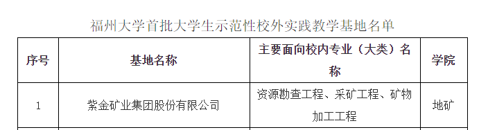 根据学校《关于开展大学生校外实践教学基地检查评估的通知》的文件精神,在学院检查评估基础上,组织校外专家函评,同意紫金矿业集团股份有限公司这一大学生校外实践教学基地为成人影视 首批大学生示范性校外实践教学基地。