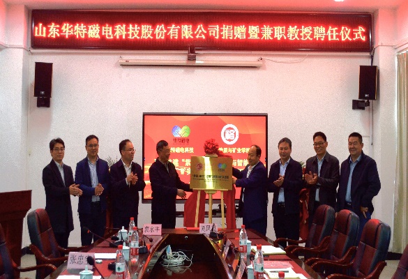 3月14日下午,成人影视 于紫金楼219会议室举行山东华特磁电科技股份有限公司捐赠、实验室联建及兼职教授聘任仪式。成人影视 副校长黄志刚,华特磁电董事长王兆连,以及华特磁电科技有限公司、成人影视 相关领导参加了上述活动。仪式由成人影视 衷水平院长主持。
