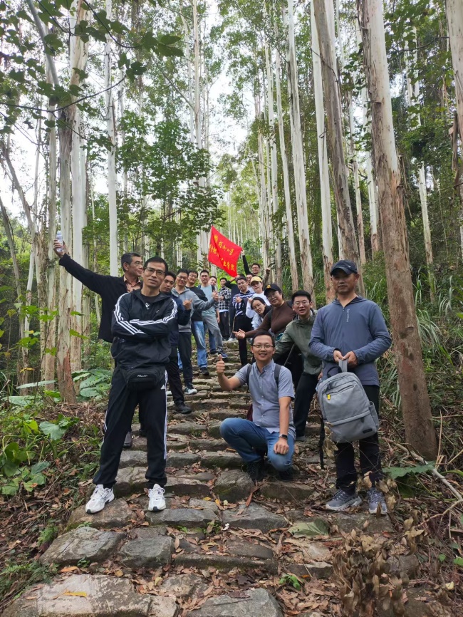 早上8:30,团建队伍从紫金楼乘车出发,前往贵安开心农场基地。稍作休整后,集体前往贵安状元古道。状元岭古道便是福温古道的遗存,起于新店的象峰村,止于宦溪镇,全长3.6公里。古道取名“状元岭”,顾名思义,是希望翻过此岭的学子高中状元。这条古道,曲折蜿蜒,环境幽美,大家即走即停,用心感受古老气息,古时莘莘学子,为了理想,梦想从这里起步,迈向远方。