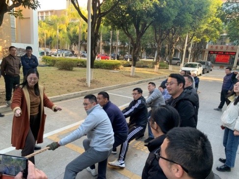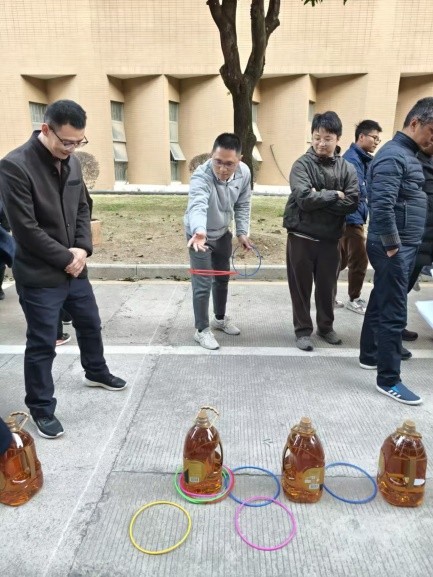 拔河比赛中,各队队员认真排名布阵,商讨策略,齐心协力,其他老师则在队伍旁边呐喊助阵,现场气氛热烈!套圈团体赛考验的是团队成员之间的默契配合。各队队员们紧密协作,相互出谋划策,力求套中更多的目标。套圈个人赛则是选手们展示个人技巧的舞台。教职工们屏气凝神,精准出手,一个个套圈在空中划出优美的弧线,套中目标的那一刻,现场爆发出阵阵喝彩。在激烈的比拼后,矿加系代表队获得拔河比赛和套圈团体赛双冠军。