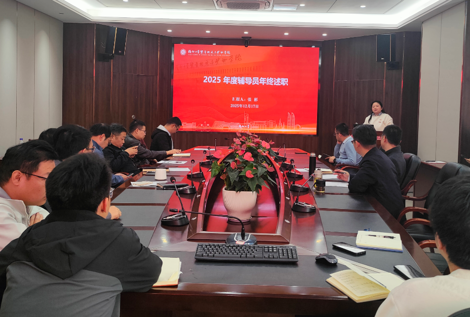 为深入贯彻立德树人根本任务,系统梳理2025年度学生工作成效,搭建互学互鉴的育人交流平台,2025年12月17日下午,学院2025年度辅导员及班级导师工作汇报交流会在219会议室举行。学院党委郑寿书记、衷水平院长等学院党政领导及全体班级导师、辅导员参加会议,共同为提升学生工作质量凝聚共识、谋划方向。