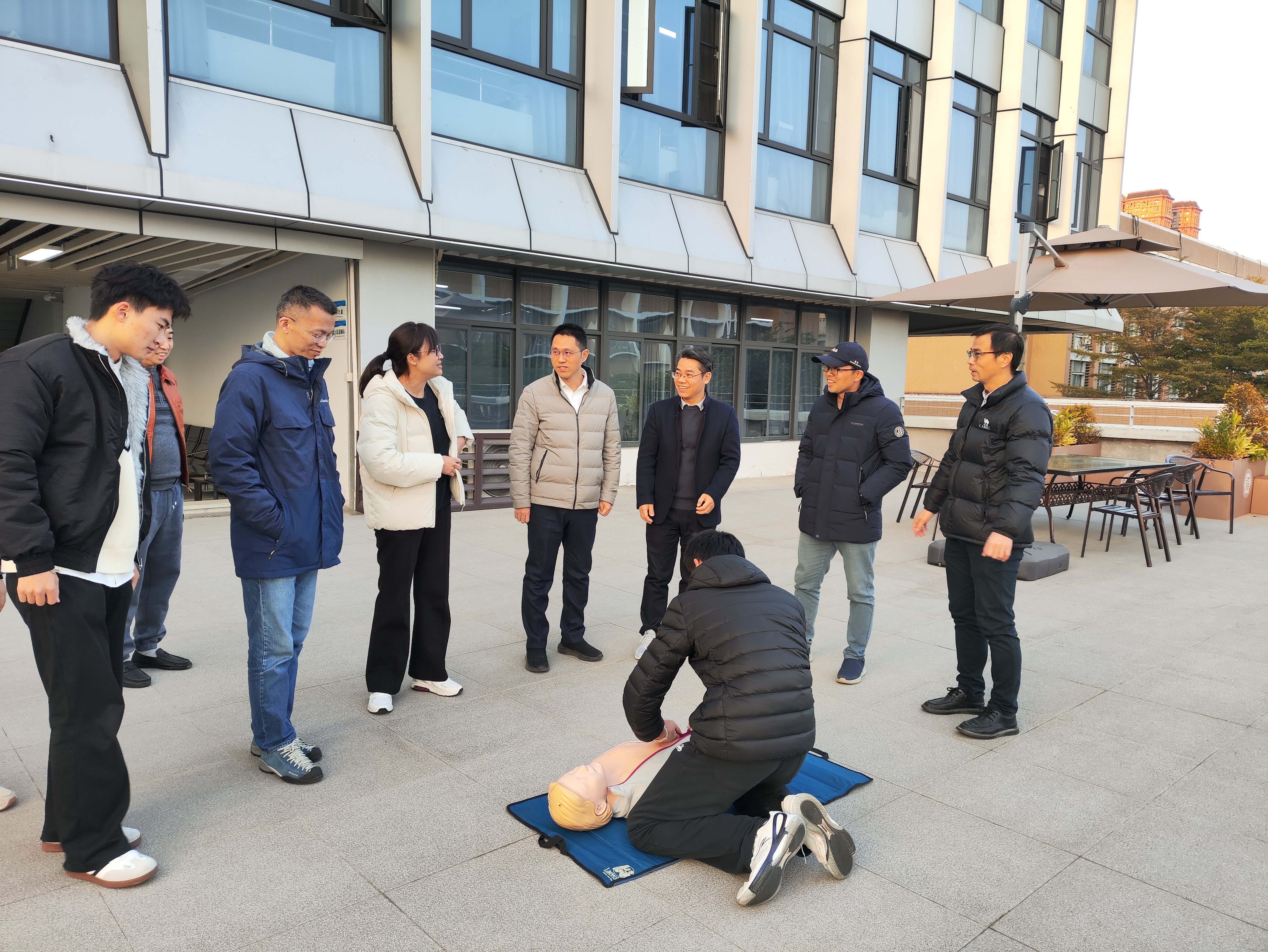 林世荣老师聚焦心肺复苏这一关键急救技术,细致讲解了从现场判断到规范施救的全流程,重点培训了在嘈杂环境中快速评估伤者意识与呼吸、规范实施胸外按压、开放气道、人工呼吸以及AED设备使用的要领。通过严谨而高效的教学,进一步提升了学生在应急情况下的处置熟练度与信心。