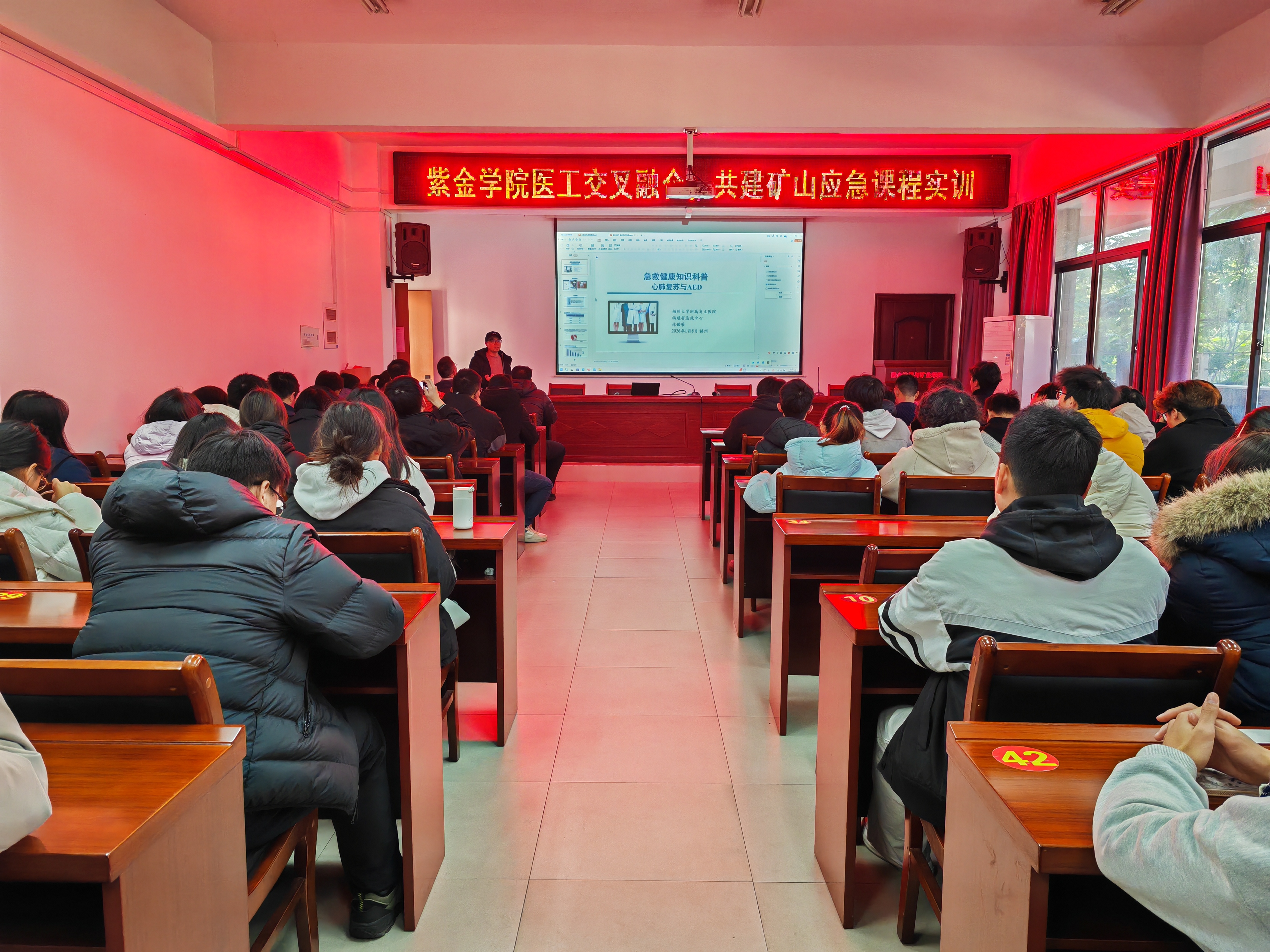 本次活动特邀成人影视 附属省立医院教育处负责人谢颖、创伤外科副主任蔡鸿儒以及福建省急救中心专家林世荣走进校园,为学院师生讲授了一堂扎实而宝贵的“生命必修课”。学院党委书记郑寿、副书记张志雄、副院长胡建华、院长助理兼地质系主任刘文元等一同参与培训。