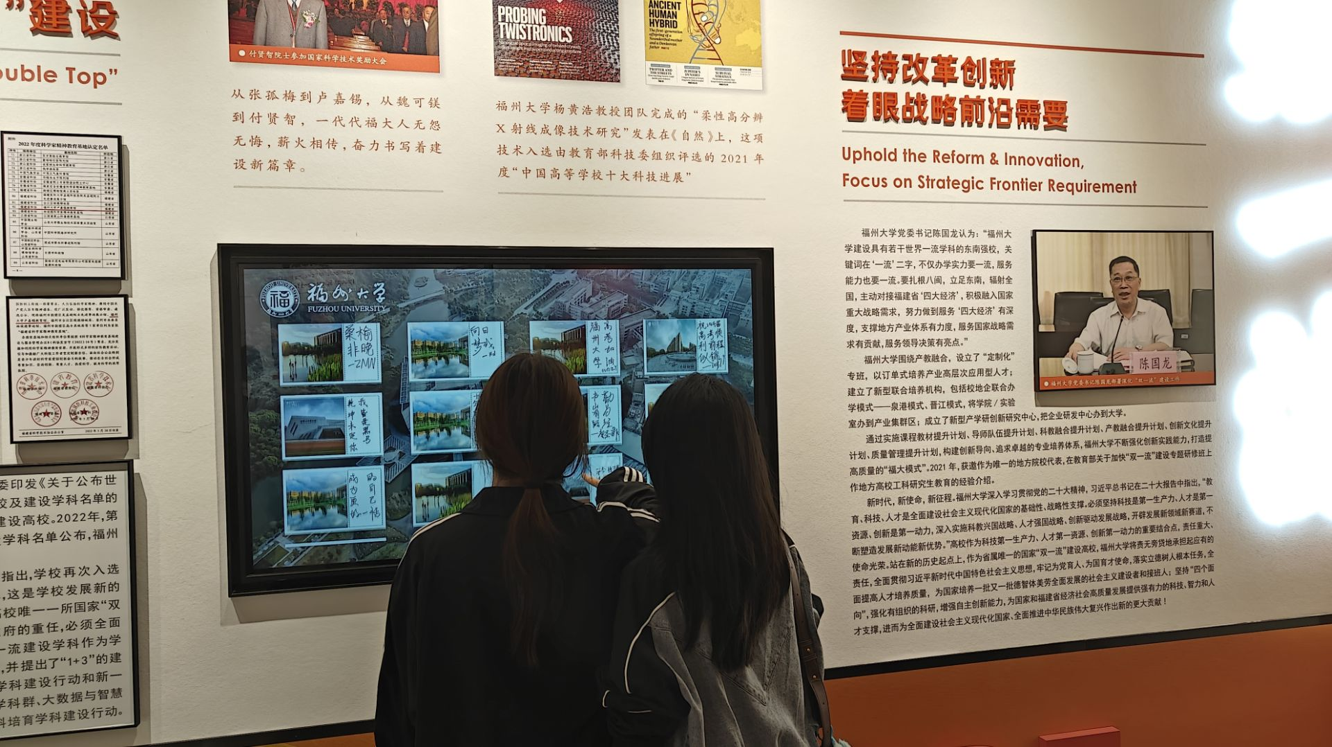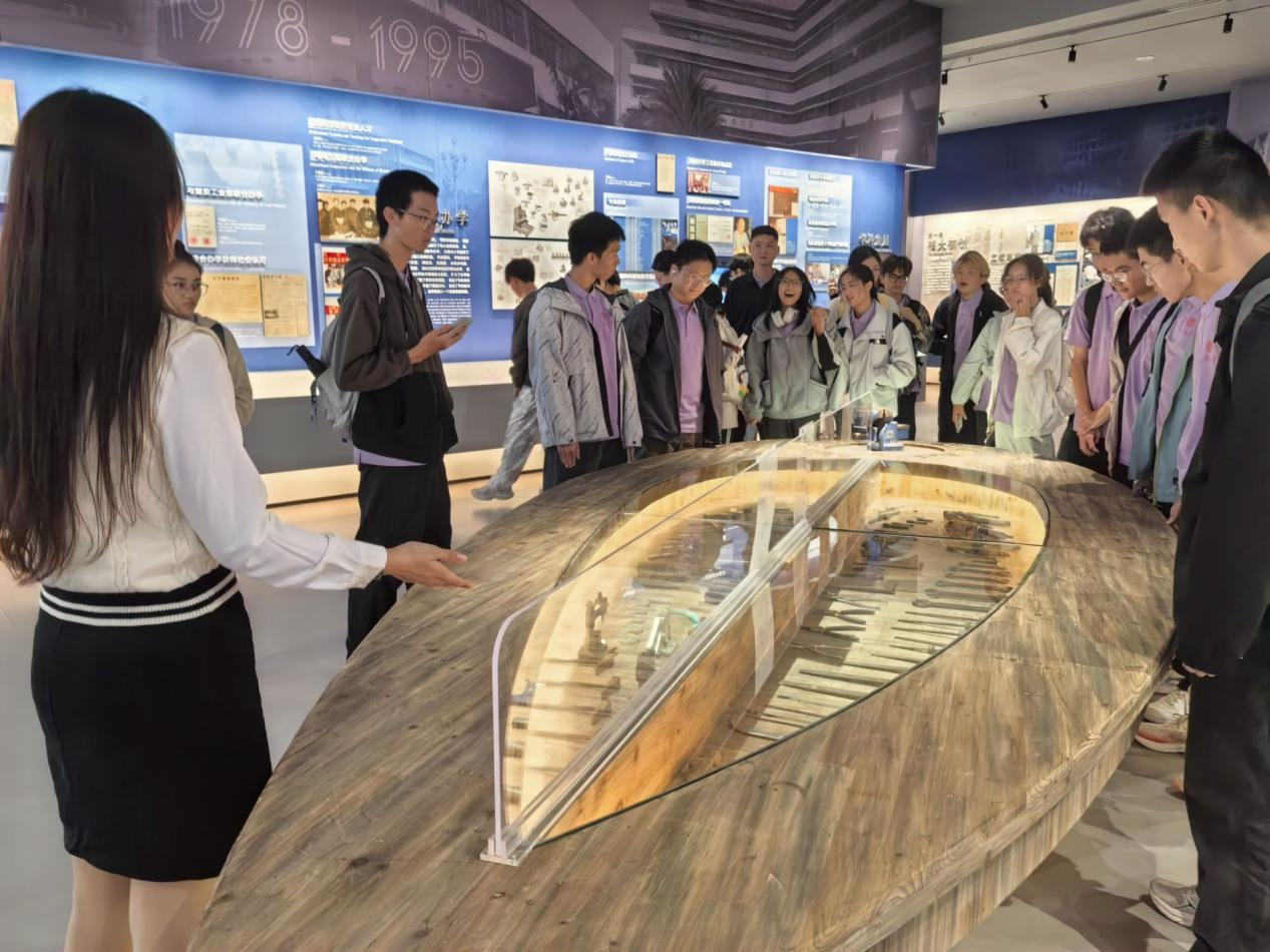 参观过程中,新生们不时驻足凝视、低声交流。在校史荣誉墙前,大家认真聆听学校在教学科研、社会服务等领域取得的辉煌成就;在老教具、旧校徽等实物展品前,同学们纷纷驻足拍照,感受岁月沉淀的福大情怀,积蓄青春奋进的力量。