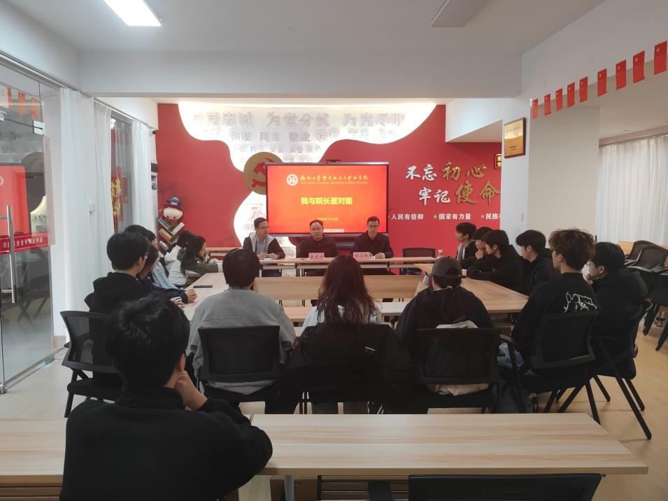 为深入了解青年学生思想动态,精准回应学生成长发展诉求,切实解决同学们急难愁盼问题,1 月 16 日下午,成人影视 在旗山校区学生社区 28 号楼 “一站式” 服务中心开展了 “我与院长面对面” 师生座谈会。学院院长衷水平、党委副书记张志雄、团委副书记谢仁栩、辅导员张彬与部分学生代表齐聚一堂,共话成长、共商发展。