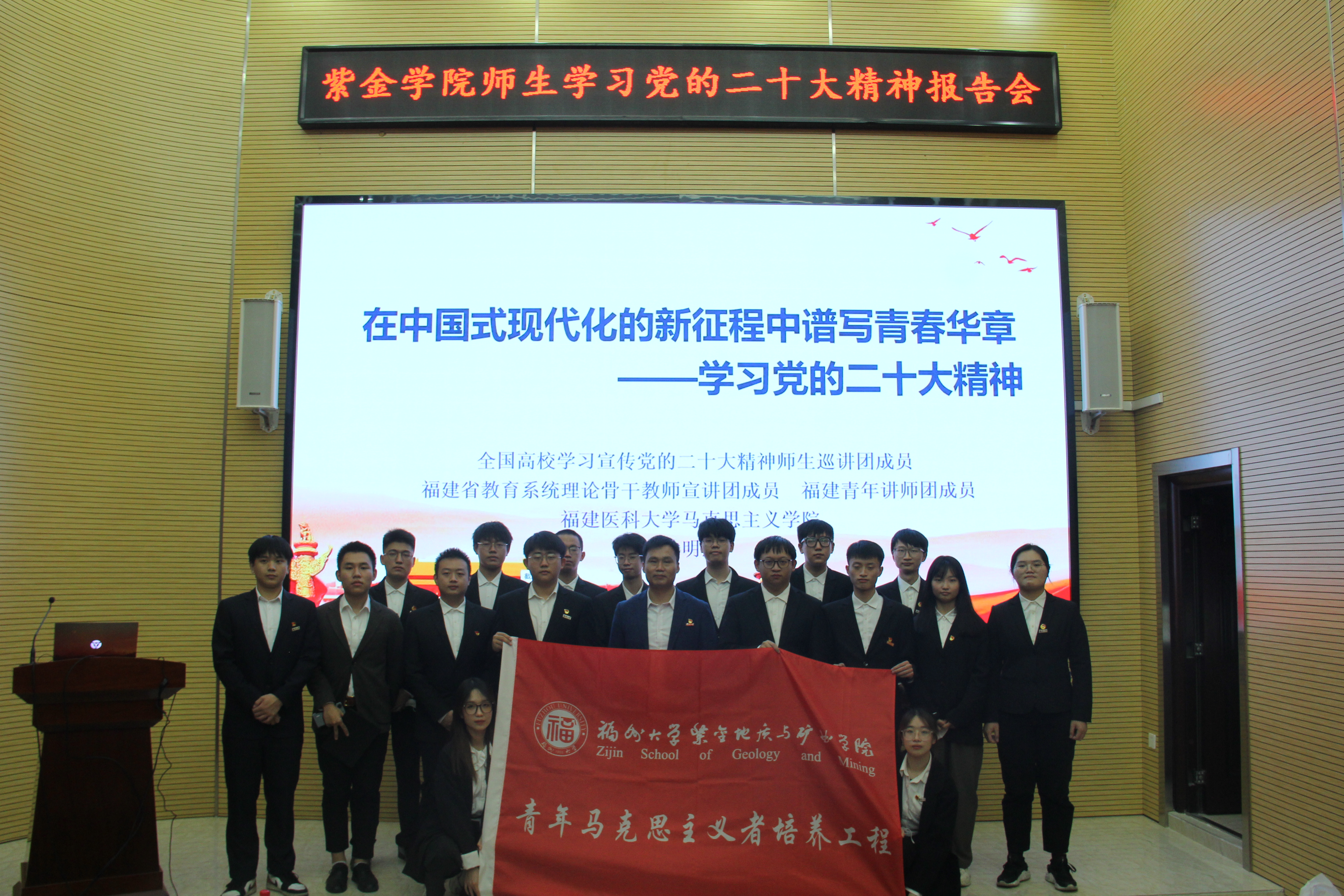 最后,林教授对我们这些入党入团积极分子给予厚望,他希望吾辈青年自信自强,踔厉奋发,笃行不怠,为中国式现代化奉献青春力量,在中国式现代化的新征程中谱写青春华章!然后林教授以一句话——“出生标定起点,选择规定拐点,奋斗决定终点,与其坐而联想,不如奋起华为”作为总结结束报告会。