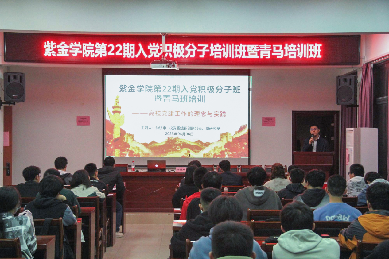 会议开始,郑寿副书记首先作第22期入党积极分子培训班开班动员。他指出:入党积极分子是经过团组织推优、党支部确定的优秀学生代表,应当认真参加培训,按照习近平总 书 记提出的“五个模范”标准严格要求自己,争作“思想好、学风好、成绩好、卫生好、纪律好”的五好紫金人。