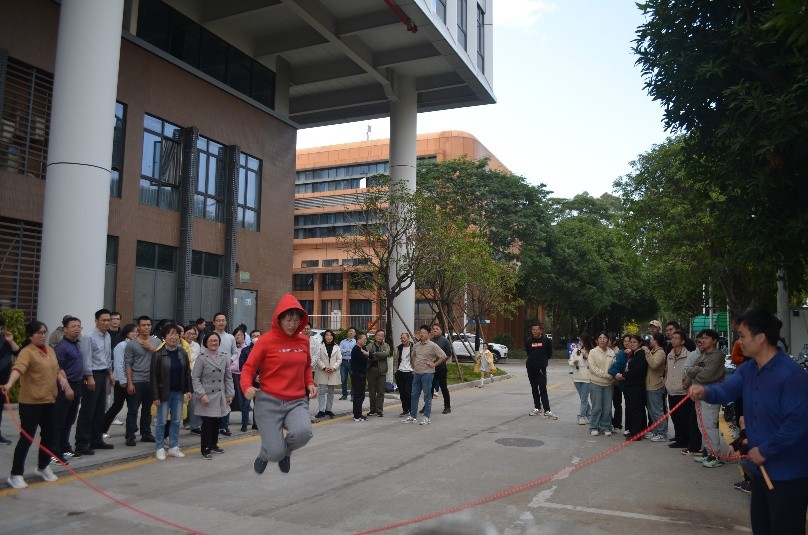 拔河比赛中,队员们认真布置战术,商讨排兵布阵策略,比赛时同心协力,铆足劲向后拉,即使落后也不放弃,其他老师则在队伍旁边呐喊助阵,加油声此起彼伏,气氛异常激烈!穿越火线比赛中,甩绳的队员和跳绳队员紧密配合,只见彩绳飞舞,队员们各个身姿矫健,龙腾虎跃;每次穿越成功都引来阵阵叫好,偶有失误也会引发一阵欢笑,整个比赛现场充满了欢笑声、鼓掌声和喝彩声。在激烈的比拼后,机关代表队获得拔河比赛冠军,岩土系代表队夺得穿越火线第一名。最终,在汗水和笑声的交织中,圆满结束了此次素质拓展活动。
