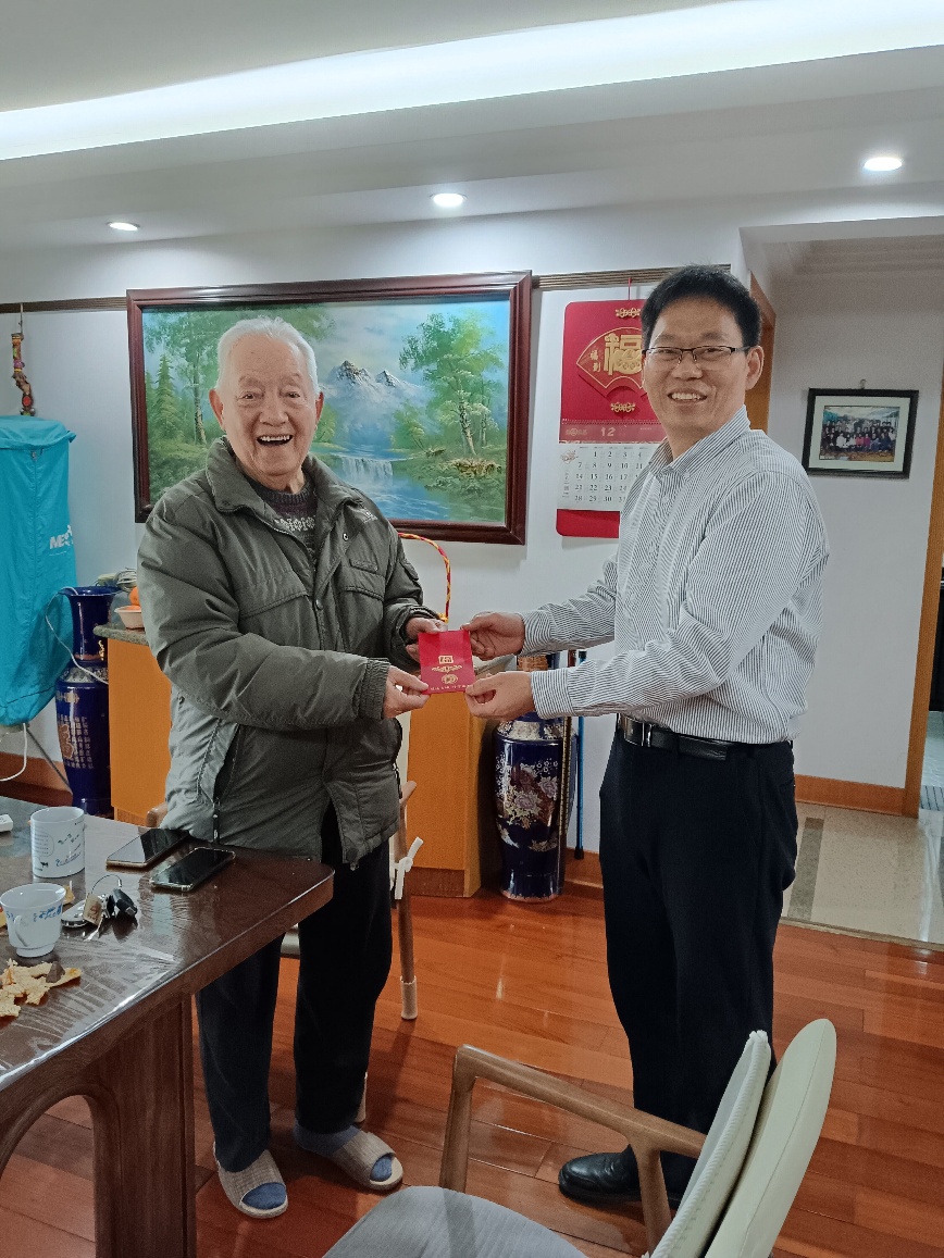 12月19日,值此2026年新年即将来临之际,根据学院党政领导的指示,工会库建刚主席一行分别走访看望了在家休养的退休老教师张载三和郑开旗两位老师,向他们致以新的一年的祝福和亲切的问候,并送去学院的关怀和温暖。