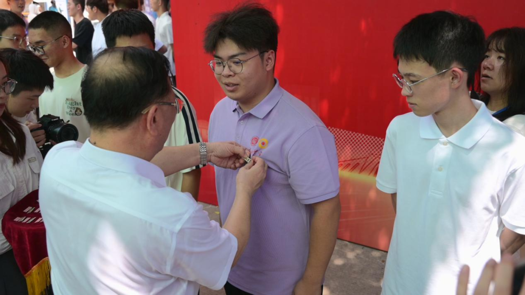 校党委书记陈国龙为地矿新生代表佩戴校徽,将承载着福大荣光与期许的校徽郑重佩戴于新生代表胸前。熠熠生辉的校徽,不仅是身份的象征,更是一枚精神的火种,将成人影视 “三种精神”的烙印悄然镌刻在新生心中。