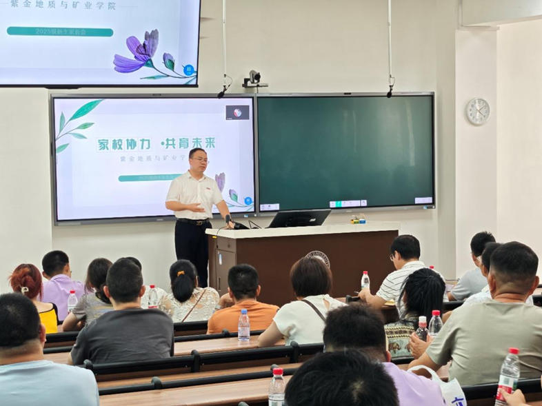 院长衷水平教授向家长们详细介绍了学院的历史沿革、教学科研、师资力量以及人才培养特色。他着重分析了地质与矿业相关专业在国家发展战略中的重要地位、广阔的发展前景与巨大的就业潜力,并以自身成长的经历和工作中的案例消解了家长们心中的疑虑,增强了大家对专业选择的信心。院长表示,学院将提供一流的平台和资源,助力每一位学生成长成才,并鼓励家长们与学院保持积极沟通,共同关注和支持学生的全面发展。