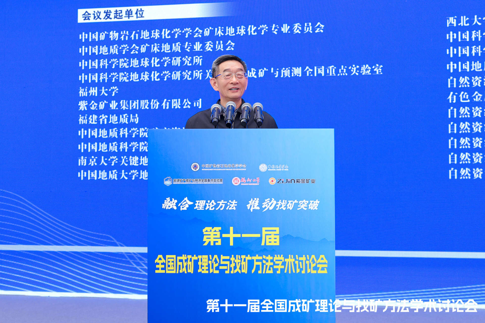 全国成矿理论与找矿方法学术讨论会每两年举办一届,是我国矿产资源领域规模大、层次高、影响深远的重要学术交流平台。本届大会以"融合理论方法,推动找矿突破"为主题,旨在系统展示和深入交流近年来我国在成矿理论创新与找矿方法实践方面取得的最新成果,助力我国矿产资源事业高质量发展。陈骏、毛景文、侯增谦、邓军、胡瑞忠、唐菊兴等院士,中国地质调查局党组成员、副局长徐学义,紫金矿业集团股份有限公司董事长陈景河等领导嘉宾出席会议。