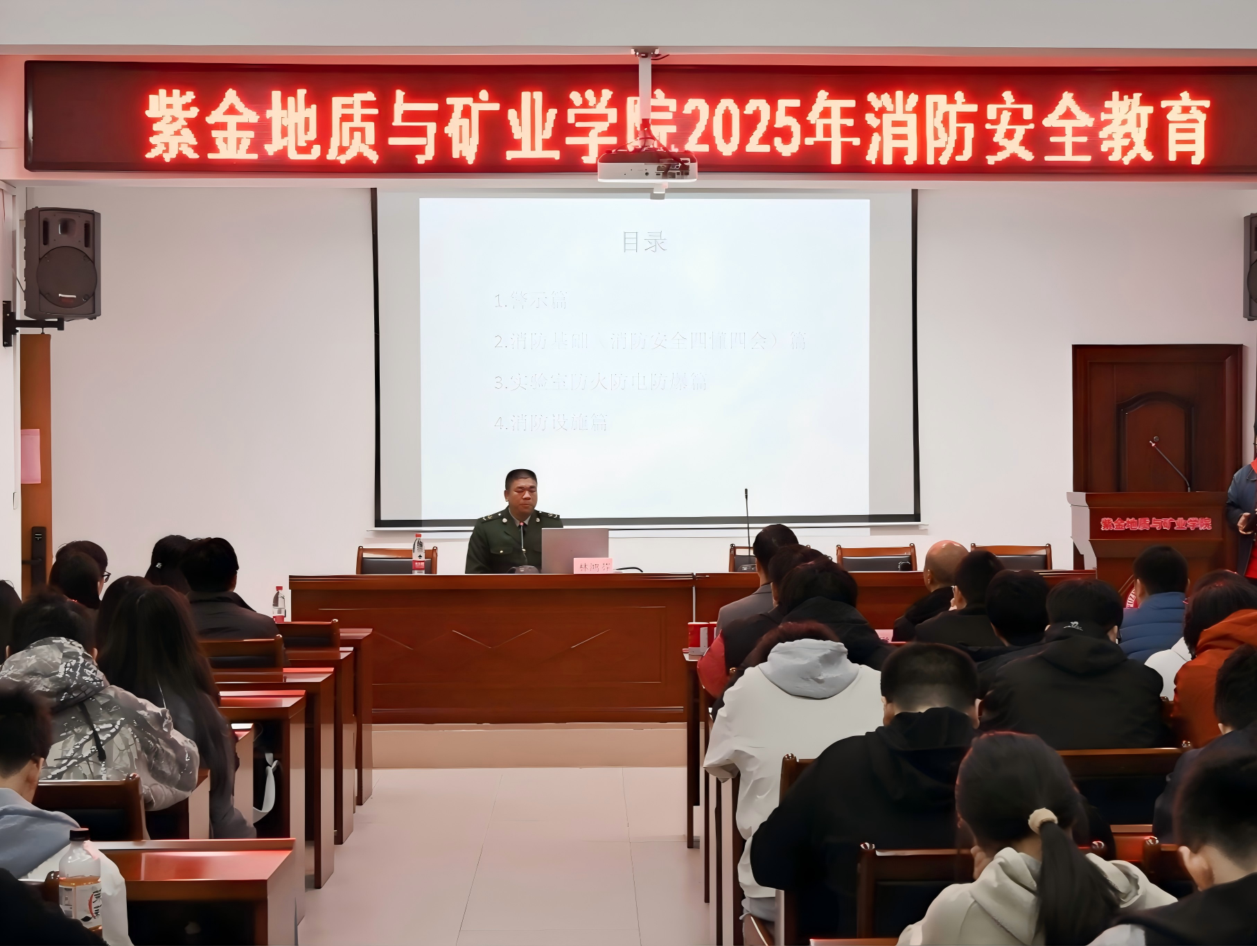 为深入贯彻落实“生命至上、安全第一”的核心理念,切实提升全院师生的消防安全意识与应急处置能力,筑牢校园安全防火墙,12月21日下午,成人影视 在紫金楼304教室成功举办2025年消防安全教育及消防安全应急演练。校保卫部消防科科长吴登雷、院党委副书记张志雄、兴盛火迪消防工程集团驻校一级消防工程师林鸿芬教官、辅导员张彬出席活动。