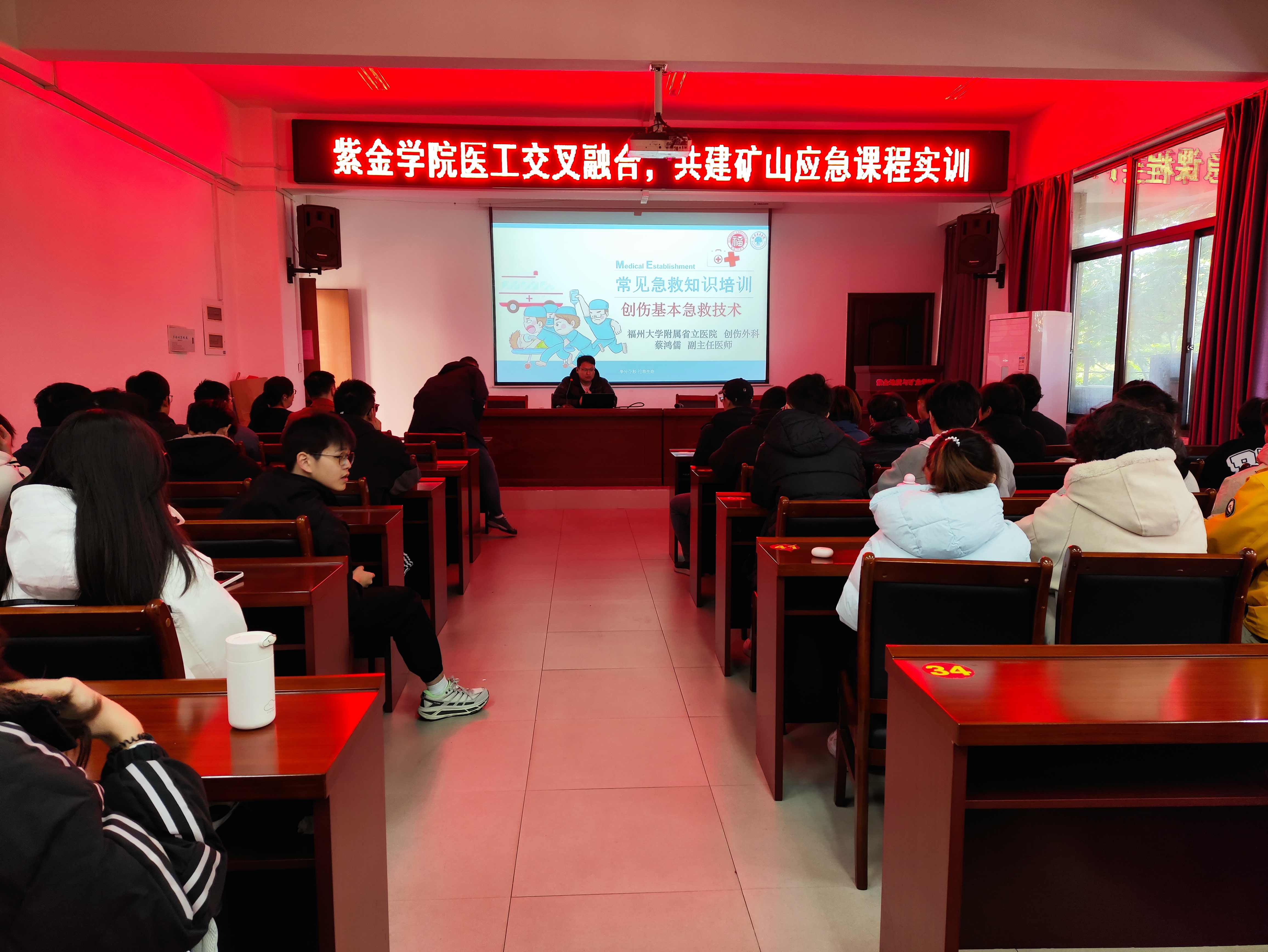 本次活动特邀成人影视 附属省立医院教育处负责人谢颖、创伤外科副主任蔡鸿儒以及福建省急救中心专家林世荣走进校园,为学院师生讲授了一堂扎实而宝贵的“生命必修课”。学院党委书记郑寿、副书记张志雄、副院长胡建华、院长助理兼地质系主任刘文元等一同参与培训。