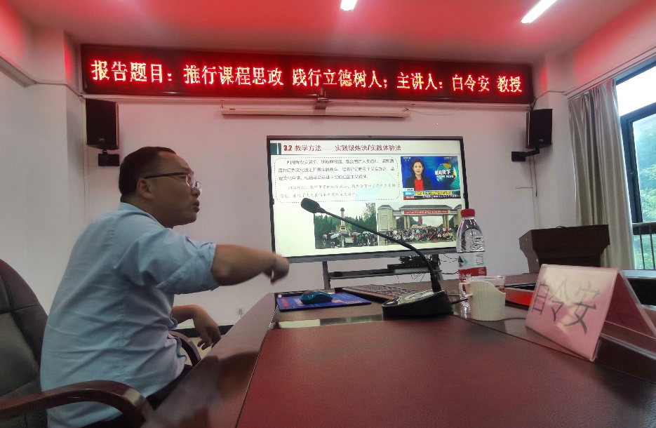 白令安教授针对教学设计与教案的异同、课程思政到底是什么、如何构思课程思政教学设计、课程思政的教学思考四个方面进行详细介绍,并示范如何将思政元素有机融入日常教学中。讲座最后还跟与会老师针对课程思政建设过程中的问题进行深入交流探讨。