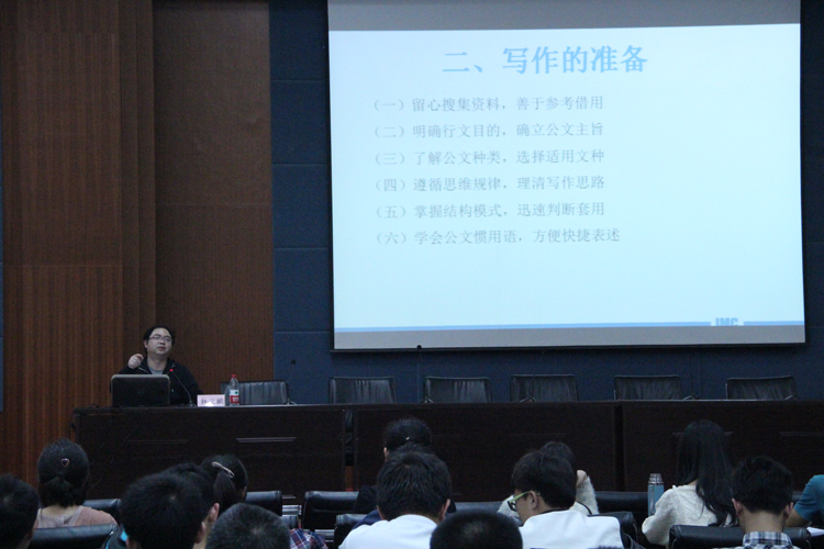 结合学院培养高素质学生干部的要求,为加强广大学生干部的公文写作能力,4月11日晚7时,紫金矿业学院第四届干部培训之公文写作技巧于学院三楼报告厅举行。此次培训主讲人为团委林文麟老师,院代理团委书记李金土出席活动,成人影视团委学生会级班级部分学生干部参与了此次培训。 在将近两小时的培训中,林文麟老师从写作意义、准备、结构、要素、文本、注意事项六方面深入细致的为同学们展开叙述,学生干部认真听讲,记录笔记。在讲座中,林老师还为学生干部们展示了一些不规范的作品,并指出其不足,及改进方法,用具体的事例引导在座学生干部理解写作规范和要求。 本次日常写作技巧培训作为干部培训的重要内容,讲述了日常写作的技巧、种类及方法。极大的促进了学生干部对写作的理解,并进一步提升了学生干部的理论知识和工作能力,推进了学生干部队伍综合素质的提高。(曾丁伟 供稿;罗瑞、曾丁伟 摄影)