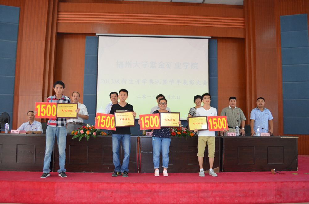 2013级新生奖学金一等奖生代表上台领奖获奖学