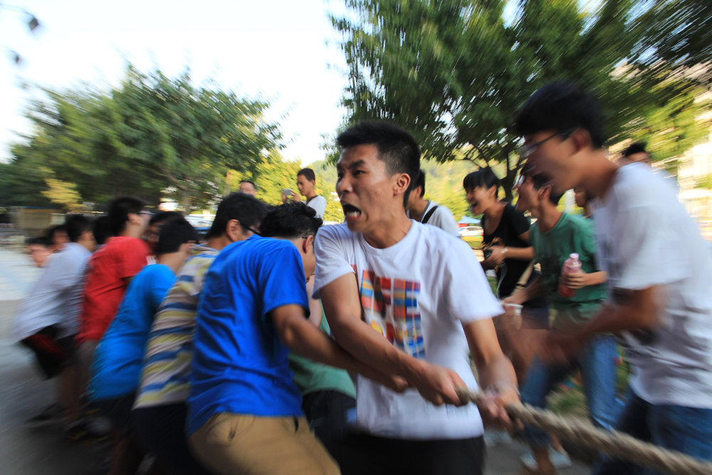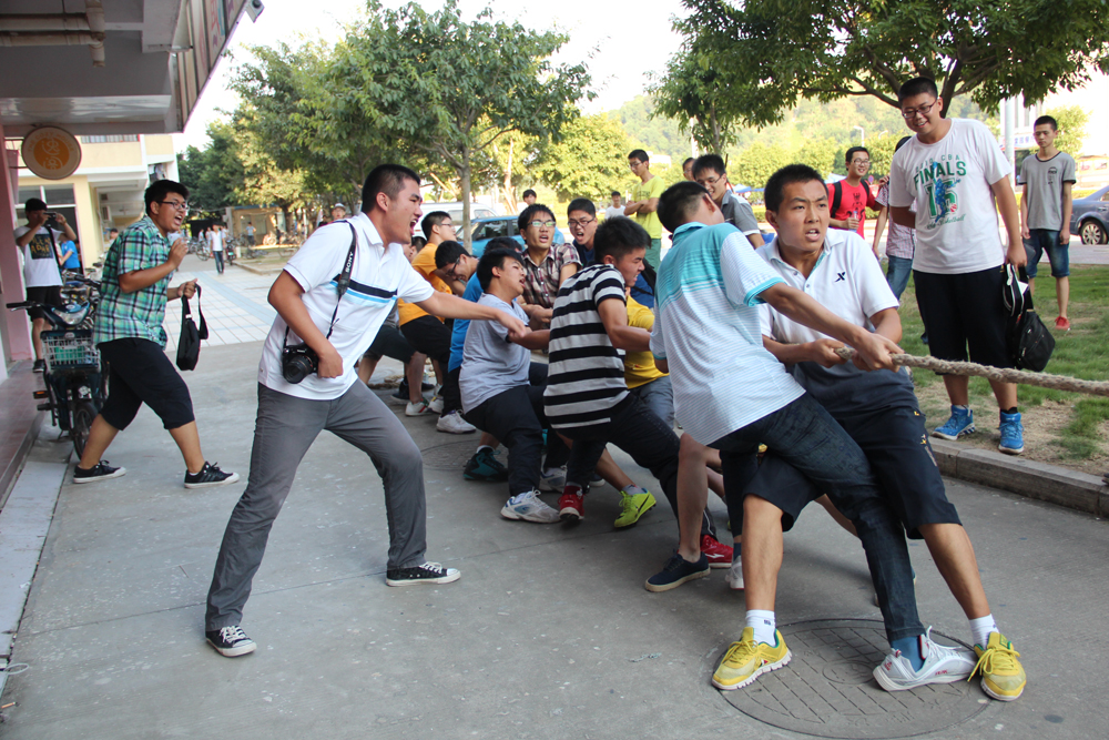 为丰富2013级新同学的课余文化生活,增进新同学们之间的互动交流,培养学生的团队协作能力,9月10日下午,在学生生活区一区组织了一场别开生面的新生拔河比赛。 比赛还未开始,双方的队员就摩拳擦掌,准备大展身手。随着比赛哨声一响,拔河绳上的红绳就不断的来回移动,双方各自喊着自己队伍的口号,场面异常激烈。令在场的观众为参赛队伍摇旗呐喊,不自觉的热血澎湃。最终,2013级资源勘查2班代表队经过了8场拼搏,摘下了冠军头衔。 此次拔河比赛,丰富了成人影视2013级同学们迈入大学的校园生活,活动取得了较好成效。