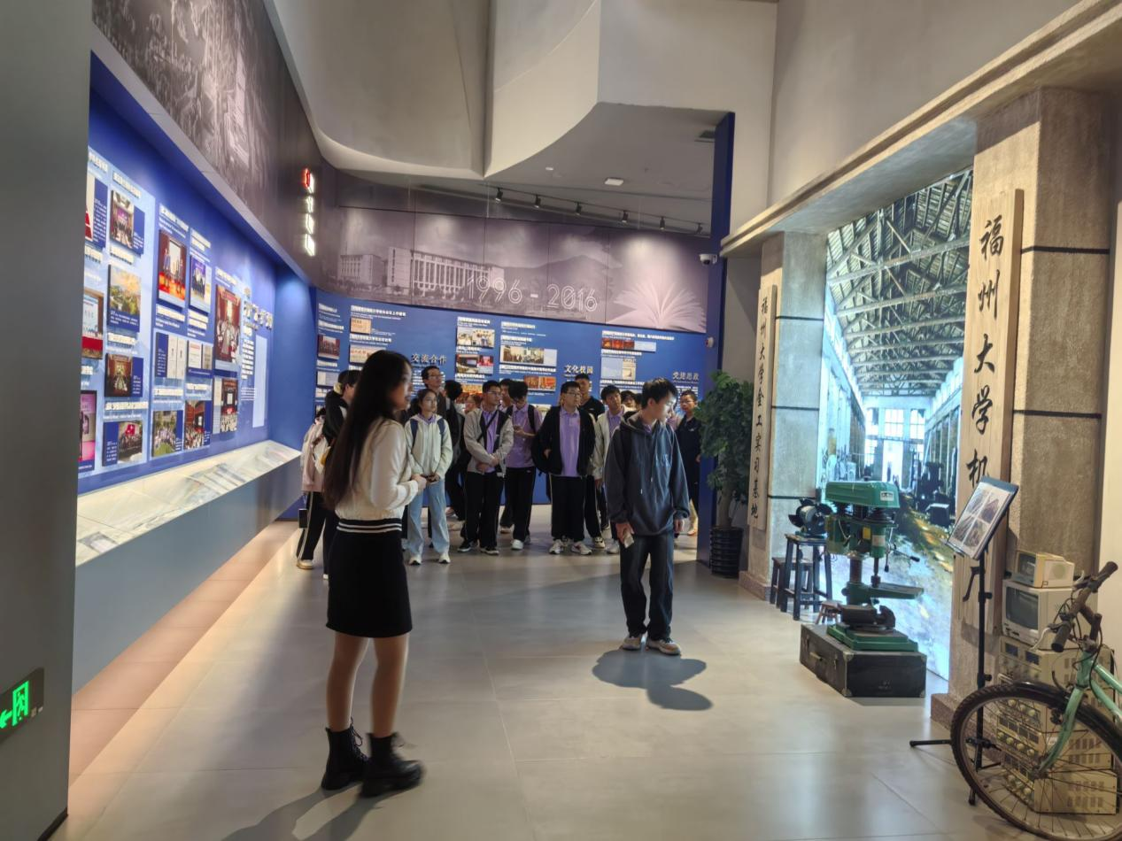参观过程中,新生们不时驻足凝视、低声交流。在校史荣誉墙前,大家认真聆听学校在教学科研、社会服务等领域取得的辉煌成就;在老教具、旧校徽等实物展品前,同学们纷纷驻足拍照,感受岁月沉淀的福大情怀,积蓄青春奋进的力量。