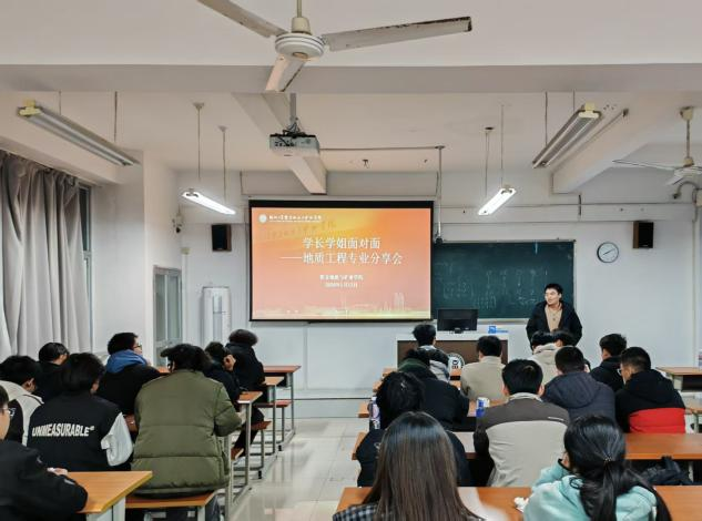 为增进成人影视2025级新生对本专业的理解,适应大学学习节奏,成人影视 地质工程专业2023、2024级本科生在铜盘校区为2025级地质工程的学生开展专业经验分享会。